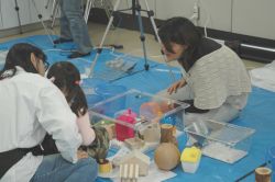 鶴川に生息する魚や大学周辺で見られる昆虫や爬虫類、両生類などの展示を行っていました。昆虫や両生類の写真の販売も行っていました。