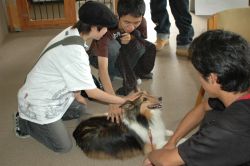 コンパニオンアニマルセンターの2階です。写っているのは学科犬の「ほのか」。